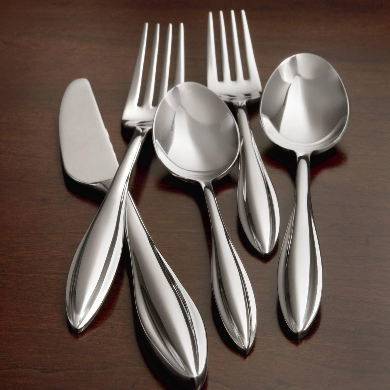 Dinner for 12? No problem, with this flatware set! This 65-piece set includes 12 place settings and all the serving pieces you'll need. Includes: - 12 place forks - 12 place knives - 12 teaspoons - 12 salad forks - 12 place spoons - Sugar spoon - Butter serving knife - Cold meat fork - Tablespoon - Pierced tablespoon