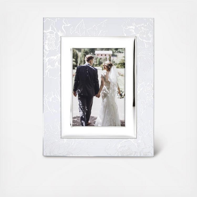 The ideal platform to showcase a heartfelt memory, this Frame is defined by Italian craftsmanship that combines glass, metal and wood with a decorative pure silver peony floral applique.
