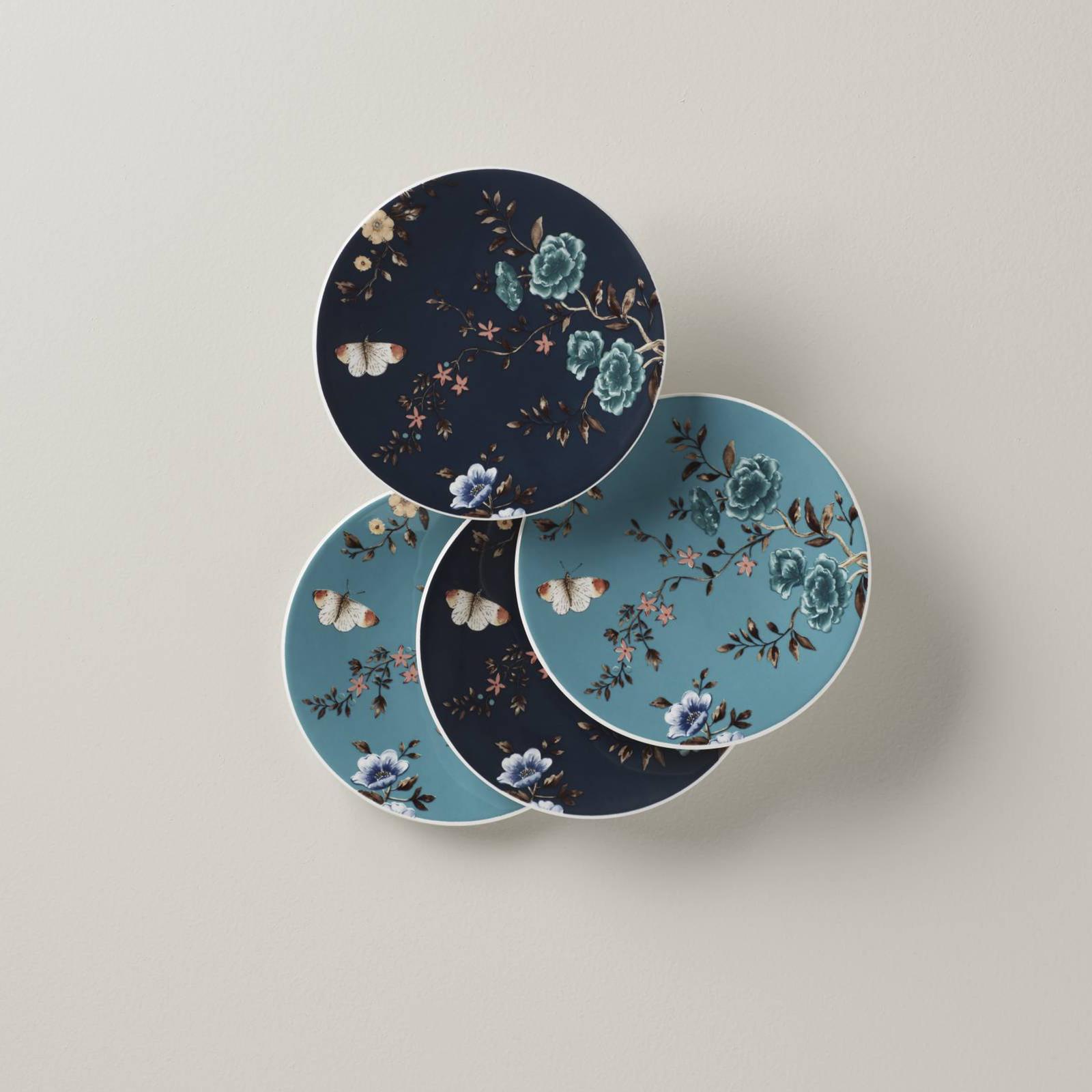 Open your home to a lush English garden with the Sprig & Vine collection. Inspired by the beauty of vintage textiles, this set of four tidbit plates combines butterflies and bright botanicals for a backyard aesthetic that will bring new life to your table. A sliver of metallic adds a gleaming touch to give this floral set its golden finish.