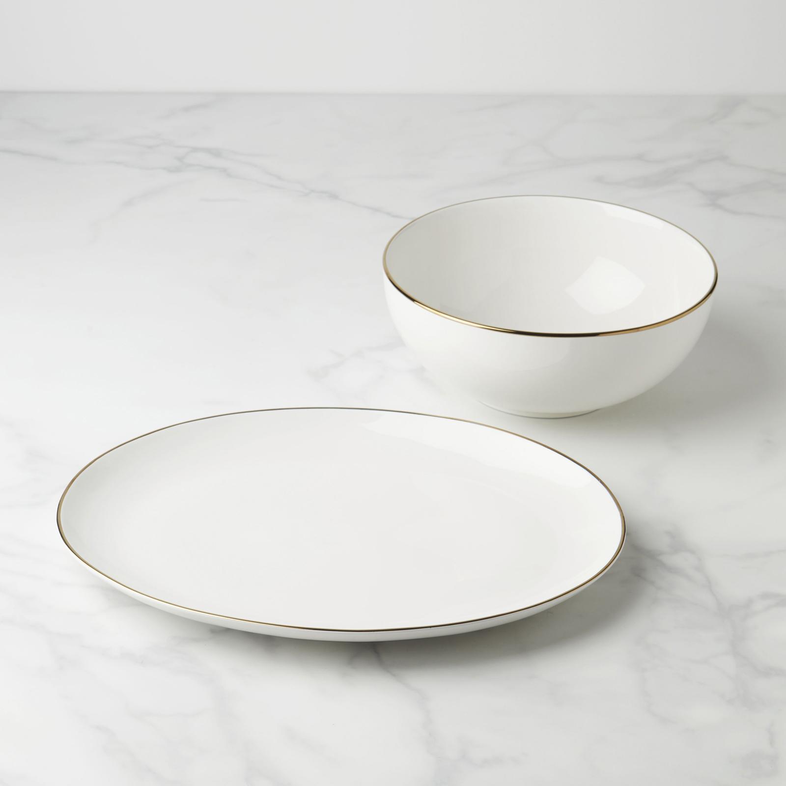 This Trianna serving set features smooth porcelain and eye-catching accents along the edges. Crafted to meet all your serving needs.