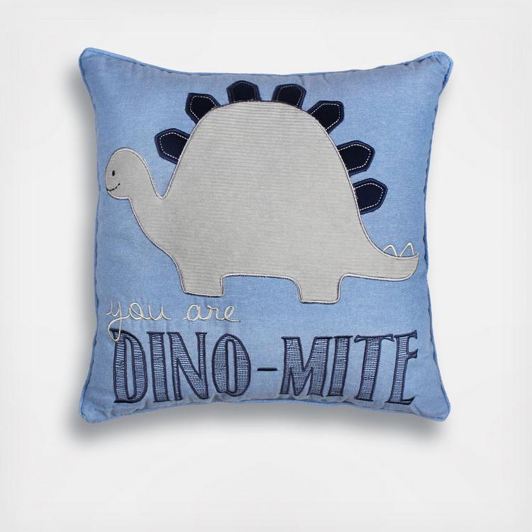 The Happy Dinosaur Pillow is a lively complement to the Kipton collection. This pillow is inspired by prehistoric dinosaur and is a soft, plush pillow with a dinosaur and the words You Are Dyno-Mite. The cozy comfort and support offered by this gorgeous pillow makes it ideal for cuddling.