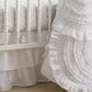 The Skylar Nursery Collection is inspired by Soft Cascading Ruffles. The quilt features tiered, ruched bed skirt, cotton crib fitted sheet with coin medallion print and wall decal with stars and the words "twinkle twinkle". Adding accents, this design will transform your child's room!