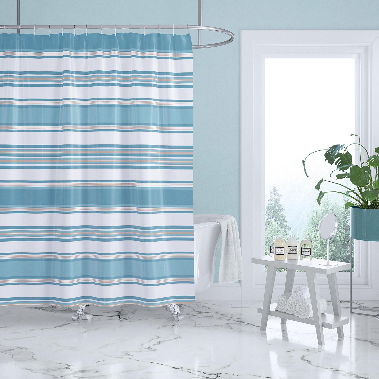 The Blue Maui Shower Curtain adds a coastal touch to any bathroom. This 72 in. x 72 in. shower curtain features a beautiful blue and beige stripe with a beige seahorse on blue as the reverse. This shower curtain is made of the softest cotton, and has a polyester liner. Let this decorative piece breathe some fresh ocean air to your space today!