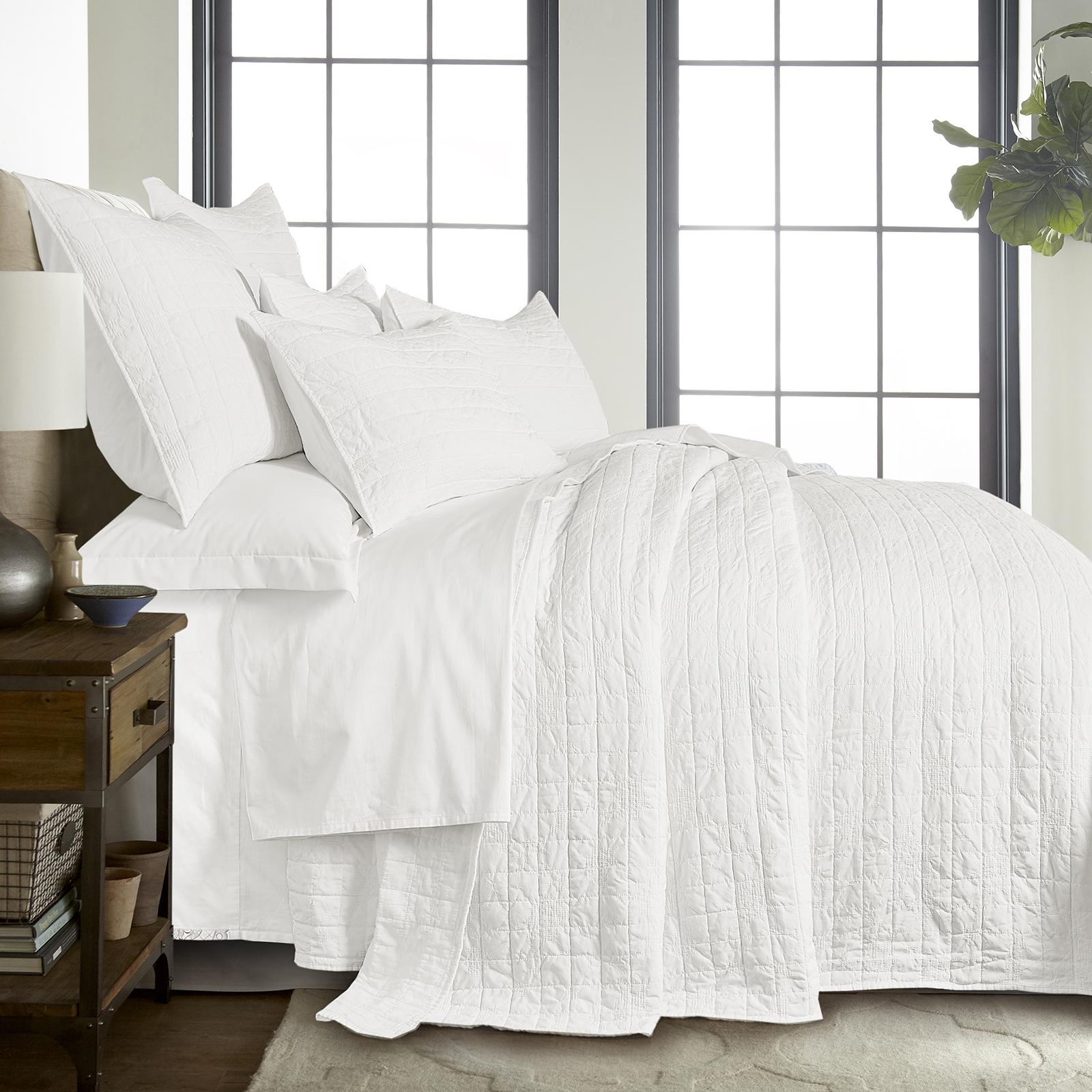 The Bowie quilted bedspread set by Levtex Home is inspired by traditional jacquards. Offered in this perfect shade of color, this design will immediately transform your bedroom. Made with the softest lightweight pre-washed microfiber, this bedspread is made from a microfiber geometric floral jacquard on the one side, reversing to a solid microfiber in the same color on the other. Enjoy this for years to come!