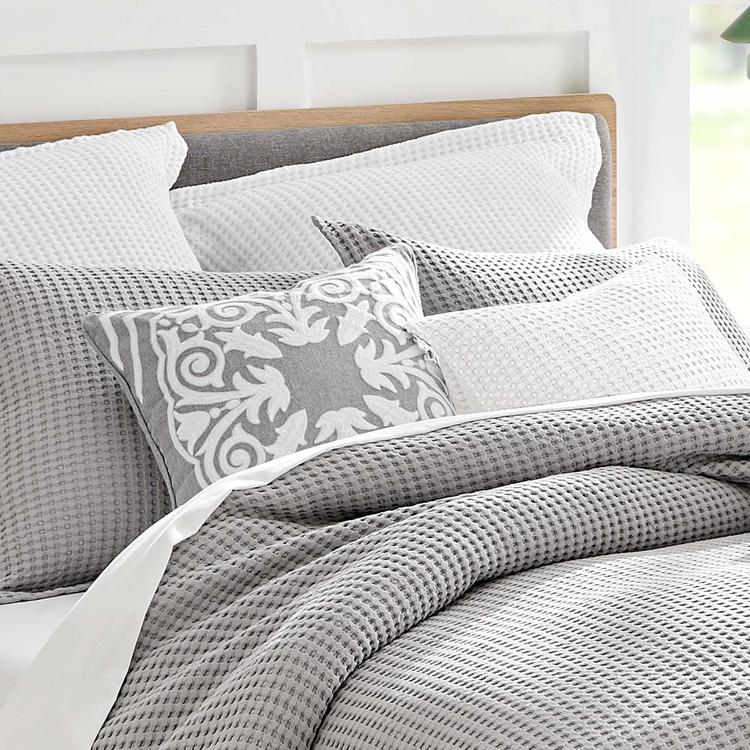 The embroidered medallion decorative pillow matches perfectly with the Levtex Home Mills bedding collection. This pillow features beautiful embroidered medalion on grey ground. The color palette makes this a versatile accessory for your bed, couch or favorite chair. The pillow comes pre-filled with a soft, luxurious feather inner.