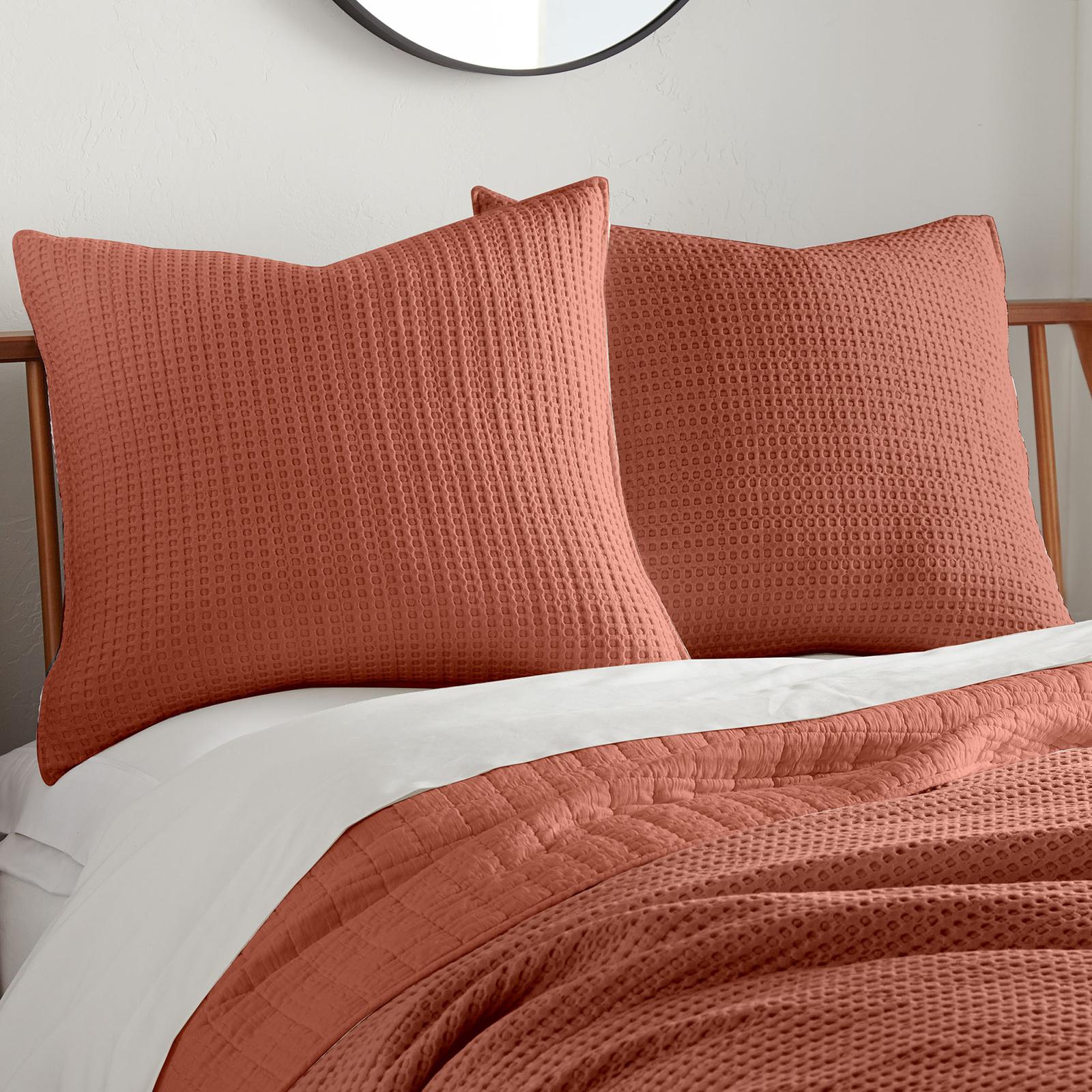 The Mills Waffle Euro Shams by Levtex Home are soft and luxurious - timeless classics. The euro shams come in many beautiful shade of colors. Whether you use them with the rest of the Mills Waffle collection or layer them in with your own bedding or another of our Levtex Home collections, you will love the versatility of the Mills Waffle euros. These euros will immediately elevate any bed into a luxurious haven. Made with the softest lightweight cotton waffle, the euro shams reverse to a coordinating brushed microfiber. The set includes 2 euro sham covers and no inners. Enjoy them for years to come!