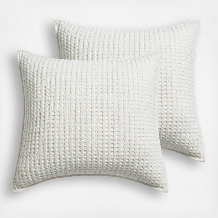 The Mills Waffle Euro Shams by Levtex Home are soft and luxurious - timeless classics. The euro shams come in many beautiful shade of colors. Whether you use them with the rest of the Mills Waffle collection or layer them in with your own bedding or another of our Levtex Home collections, you will love the versatility of the Mills Waffle euros. These euros will immediately elevate any bed into a luxurious haven. Made with the softest lightweight cotton waffle, the euro shams reverse to a coordinating brushed microfiber. The set includes 2 euro sham covers and no inners. Enjoy them for years to come!