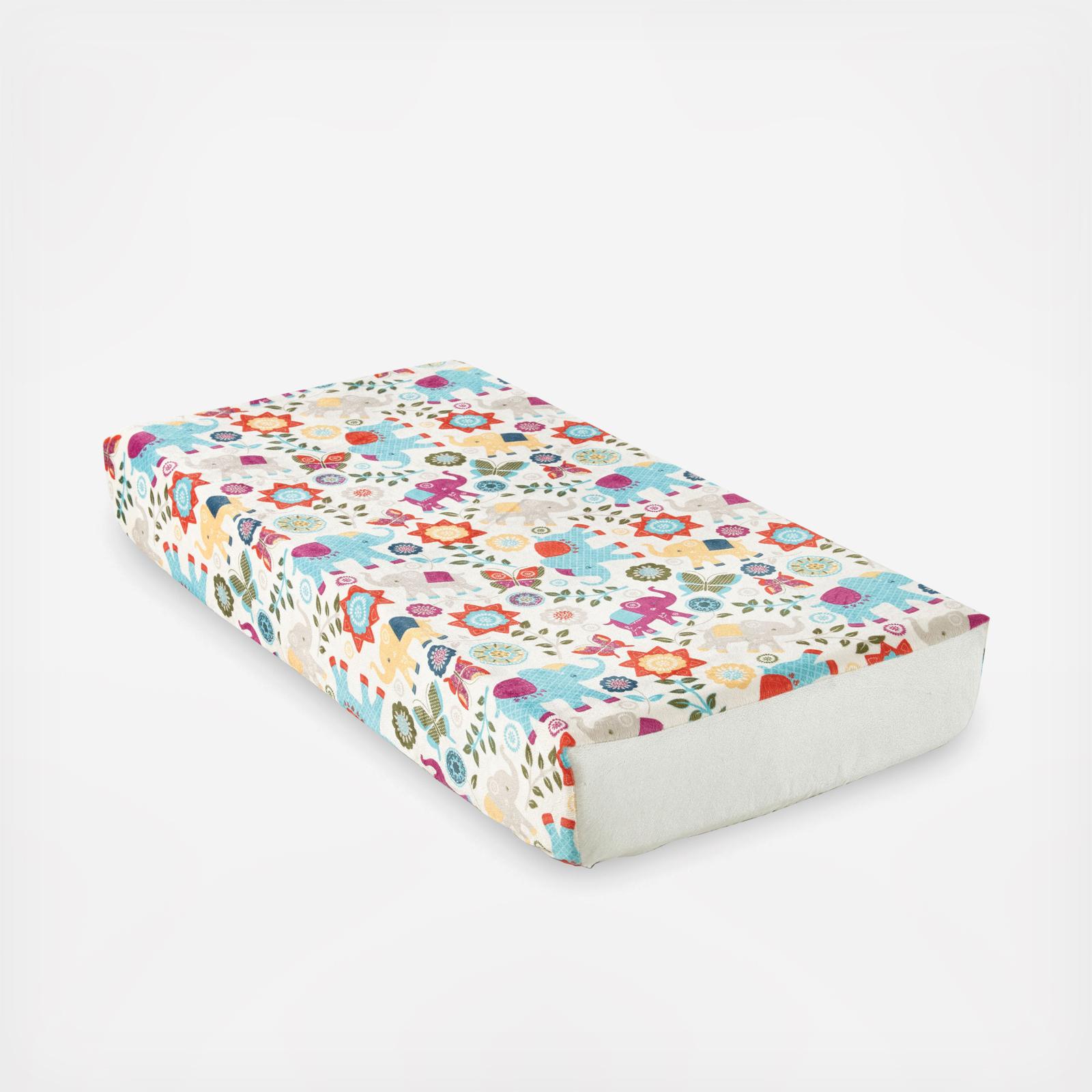 Ensure your baby's diaper change will be easy and comfortable with the Levtex Baby Zahara Changing Pad Cover. This fashionable pad cover features a fun and adorable multi-colored elephant pattern in a soft velour fabric. This changing pad is easy to use and care for and has elastic sides for a tailored, snug fit.