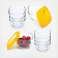 The Libbey Serve It Glass Storage Bowl Set includes eight 2-cup glass bowls with semi-transparent yellow lids, designed for meal prep, leftovers, and snacks. Made from durable glass that is oven, microwave, freezer, and dishwasher safe, these versatile bowls transition easily from cooking to storage. The colorful lids provide a secure fit to help keep food fresh, while the stackable design saves valuable space in your refrigerator or pantry.