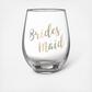 Be prepared for wedding day, bridal shower or bachelorette party toasts with this elegant stemless wine glass. Not only is this a great way to ask your friends to be a part of your wedding, it makes a nice keepsake for them to remember the part they played in planning and your wedding day.