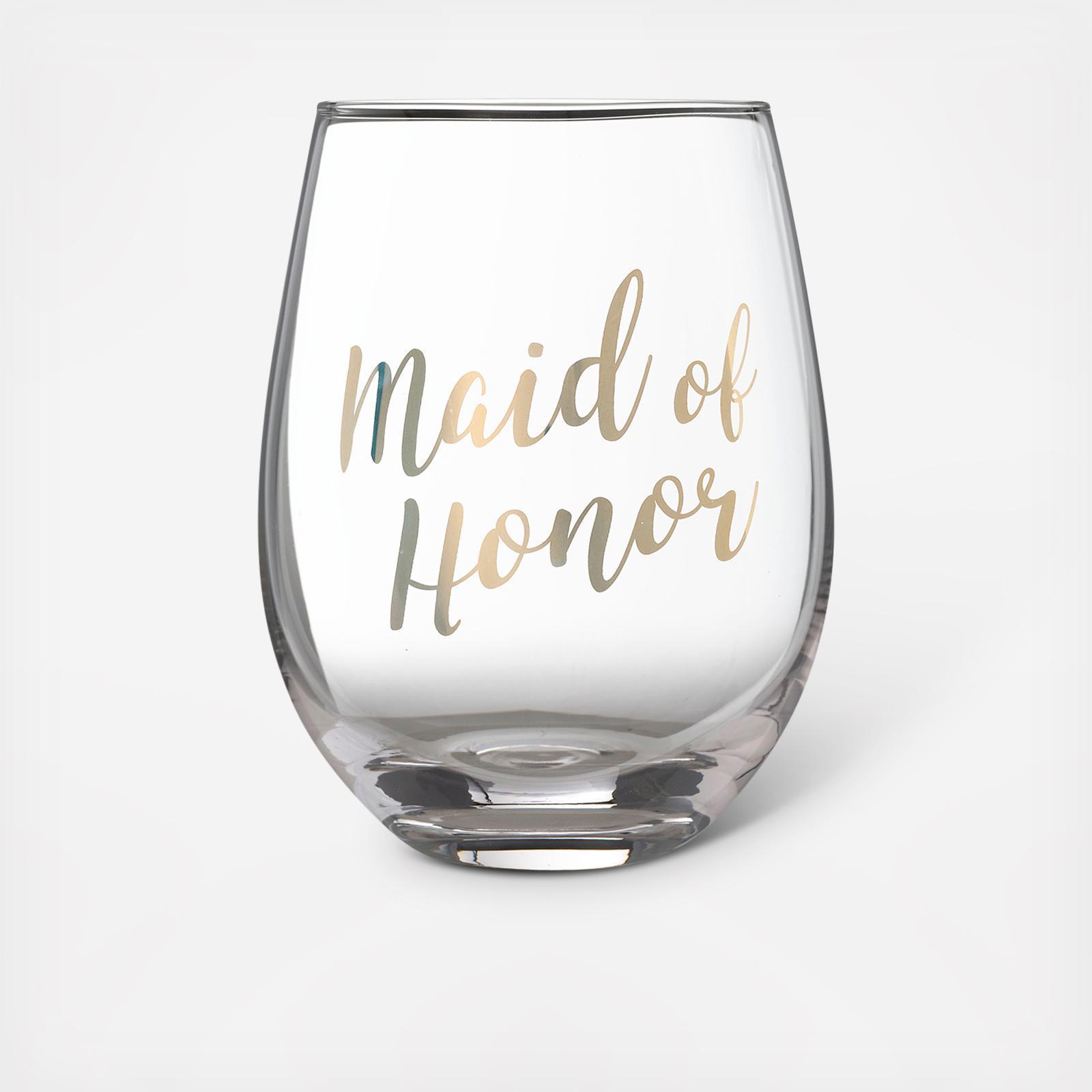 Be prepared for wedding day, bridal shower or bachelorette party toasts with this elegant stemless wine glass. Not only is this a great way to ask your friends to be a part of your wedding, it makes a nice keepsake for them to remember the part they played in planning and your wedding day.