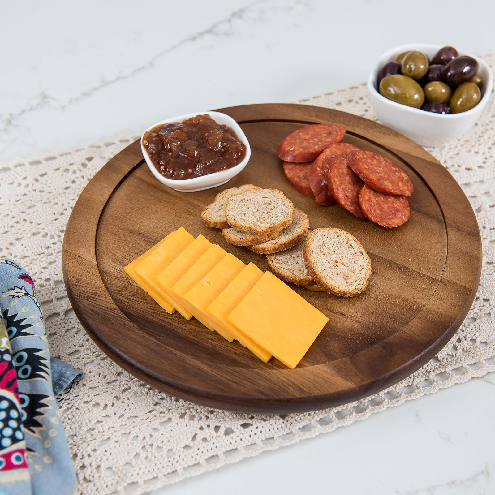 From serving up tapas to setting out a pitcher of freshly squeezed lemonade, this Acacia Lazy Susan brings convenience and functionality to tables, counters, pantries, and beyond. The high variation in the grain and knot pattern of acacia allows you to pair each piece with both light and dark colors inside any room. This Acacia Lazy Susan is the ideal choice for a centerpiece on your table or a focal point on your counter-top. Paired with a smooth gliding turntable for easy turning, this beautiful wooden Acacia Lazy Susan makes sharing a meal or drinks both easy and elegant.