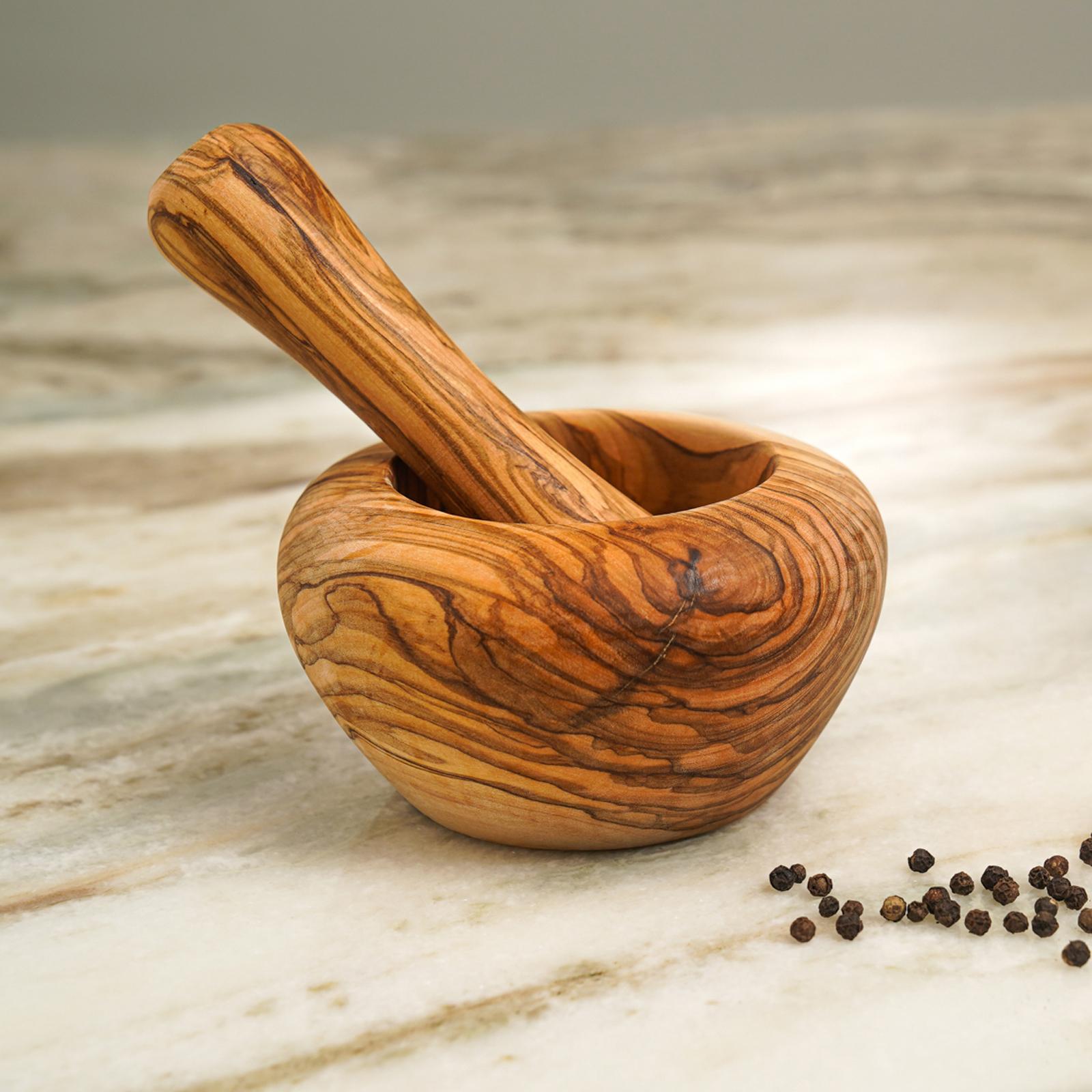 The Olive Wood Mortar and Pestle is great for grinding herbs, spies and making homemade dressing. This wood possesses a beautiful high variation in the grain and strikingly rich and colorful appearance that naturally draws the eye. Olive Wood is almost always warm in color, which means that it’ll warm up any room you choose it for. Looks great to sit on your kitchen counter for easy access.