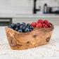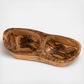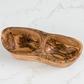 This beautiful wooden rustic dish is crafted from durable and attractive olive wood. The density of olive wood makes it less susceptible to stains, odors, and even knife gashes. Each piece crafted of this extremely hard and durable wood is shaped and sanded, then polished with food-safe oil to moisturize the surface and bring out the beautiful color and grain pattern. In your kitchen, dining room, or living room, these two-section pieces can be used for storing fruit, snacks, or crafts; all to fit your everyday needs.