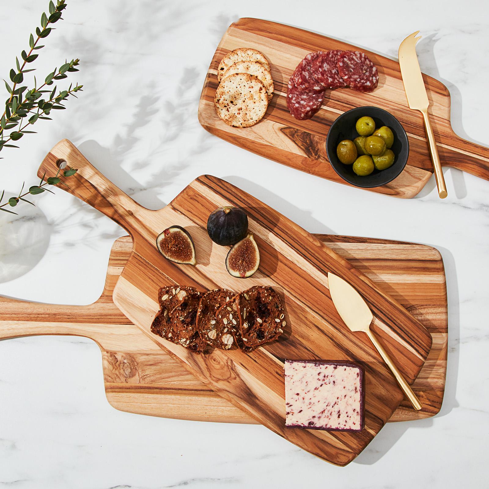 This Paddle Board with Leather Ties and Beveled Edges have the style to make an impressive display. You can use one of this paddle board as a serving tray, decorative centerpiece or cutting board. These paddle board is a must-have for your table whether you are serving up cheese or appetizers at a family dinner, holiday gathering or cocktail party. Durable and beautiful, this Paddle board will add a beautiful dimension to your serving as well as offer years of use.