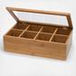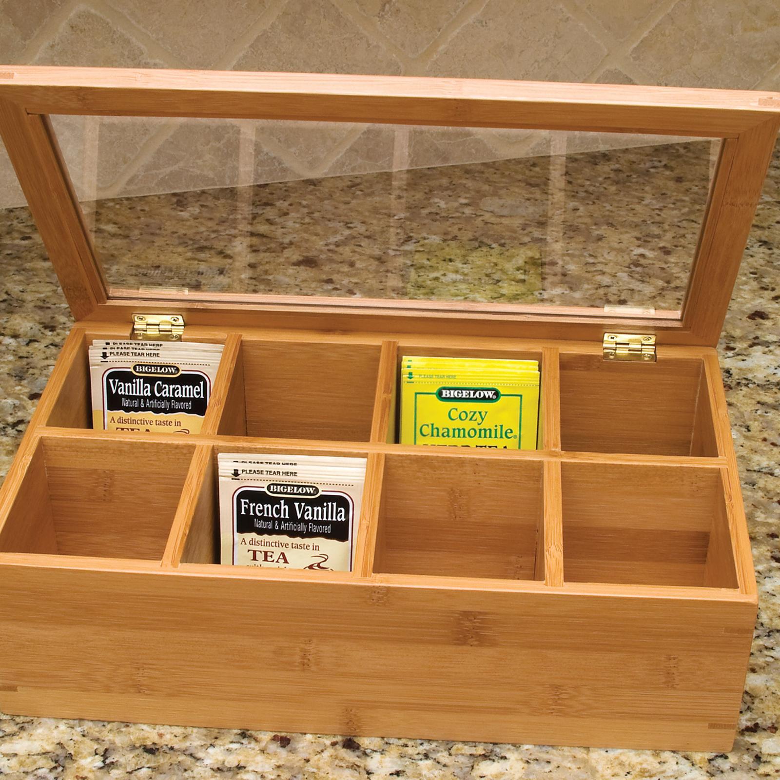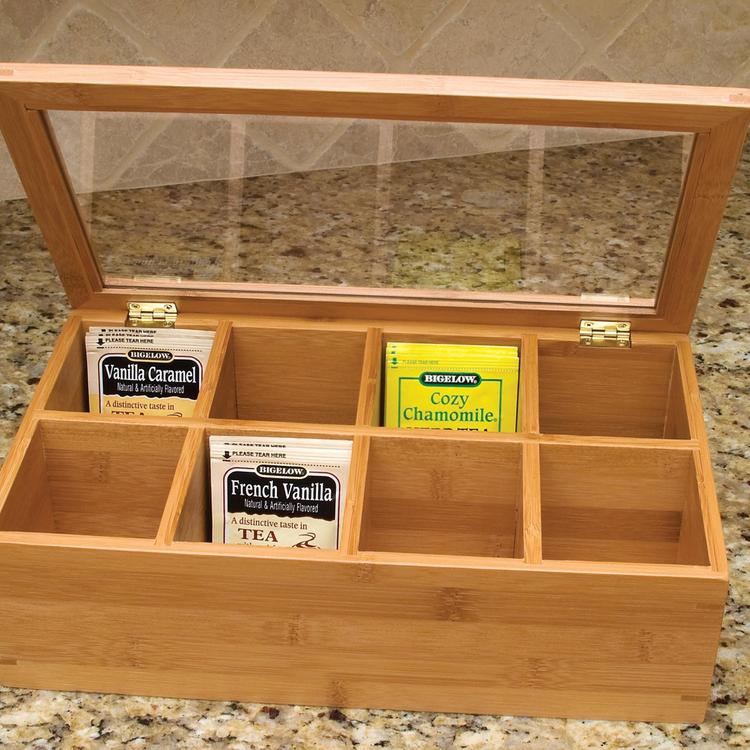 Elegant way to organize and store your tea. Use also as a keepsake or jewelry box. A wonderful housewarming gift. Features a transparent, acrylic lid and 8 compartments for storage Made from environmentally friendly bamboo, a natural and renewable resource