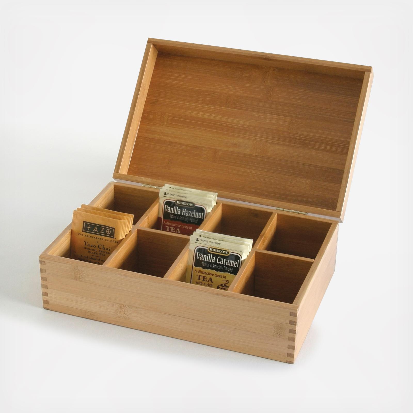 Elegant way to organize and store your tea. Use also as a keepsake or jewelry box. Features 8 compartments for storage. Dividers are removable for space customization. A wonderful housewarming gift Made from eco-friendly bamboo, a natural and renewable resource