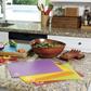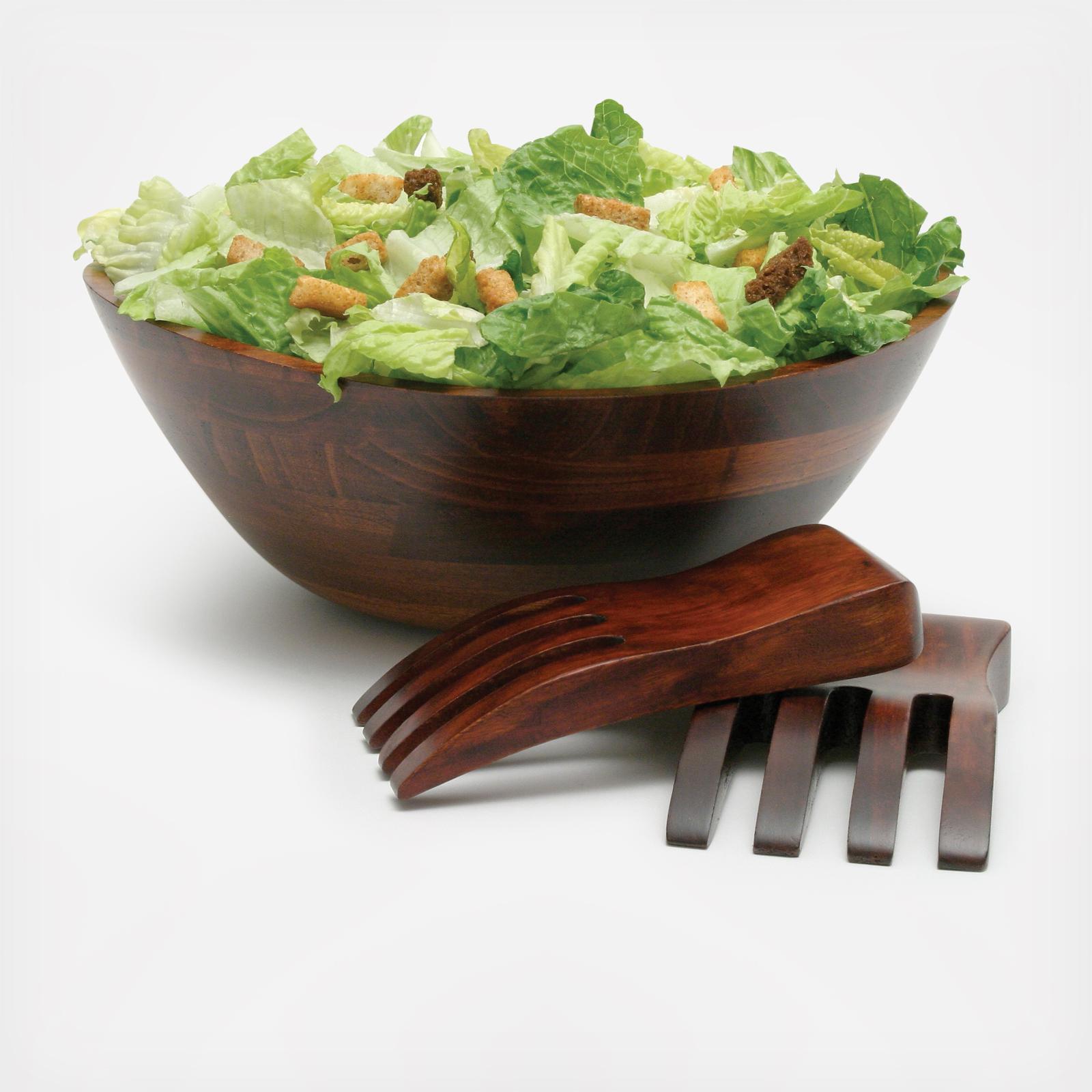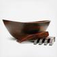 Generously sized, beautifully shaped bowl with wave rim, perfect for salads, fruits or even as a centerpiece bowl. Comes with contemporary tossing hands. Stained with a food safe deep rich cherry color. Compliments any decor.