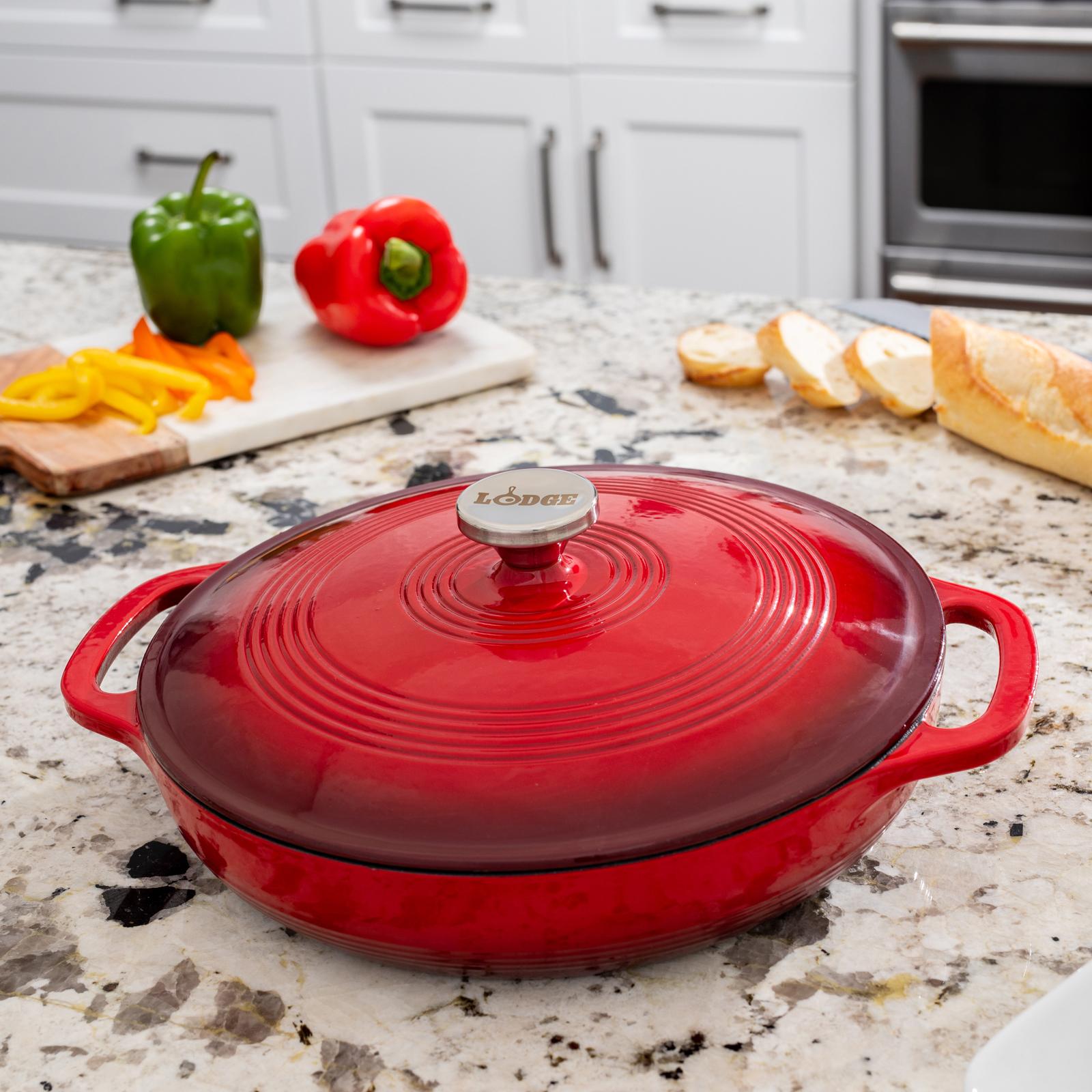 Lodge Cast Iron has been making quality cookware and bakeware since 1896. Our line of imported Essential Enamel brings high-quality performance to your kitchen with cookware designed to last. This casserole is the perfect size for a family meal and can be used to broil, braise, bake, fry, sauté, and even marinate foods. Reach for this quality piece that can do it all!