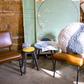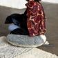 Inspired by the Sun Rays painting by Regina Giménez, and complementing the rug, this round wool floor cushion combines medium pile and short pile wool, in soft colors Sea shell and Sandstone, contrasting with Smoke Blue. The cushion has a zipper and removable inside filler with polystyrene balls.