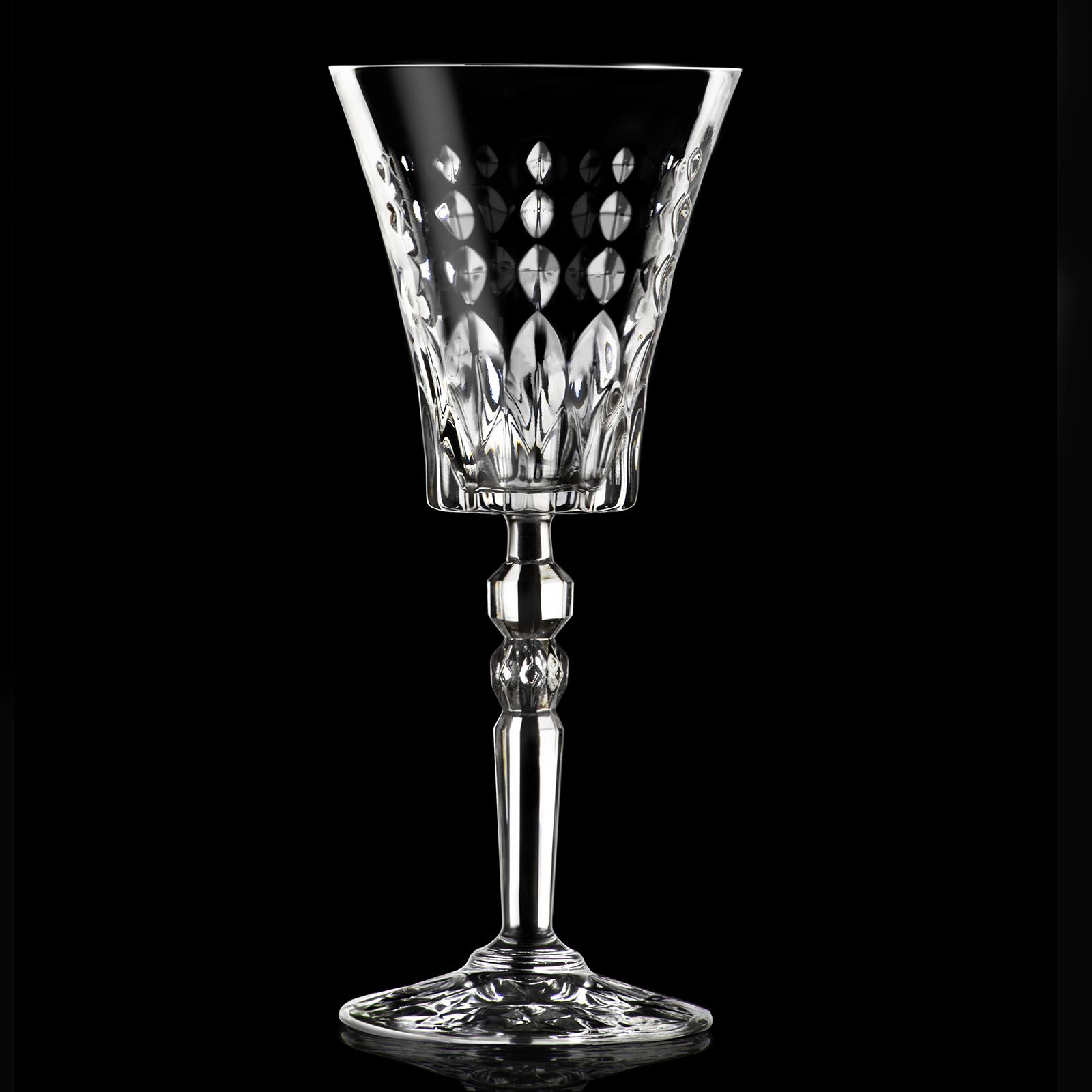 The Marilyn Collection is an upscale and elegant collection with a flared top and sturdy cut crystal stem. Featuring a series of oval cuts increasing in size as they cascade down the glass. Cuts in the bowl and stem of the glass reflect the light bueatifully, creating a stunnig look. Made in the tuscon region of Italy with the highest standard of quality and attention to detail. This red wine set is perfect for enjoying your favorite drink.
