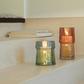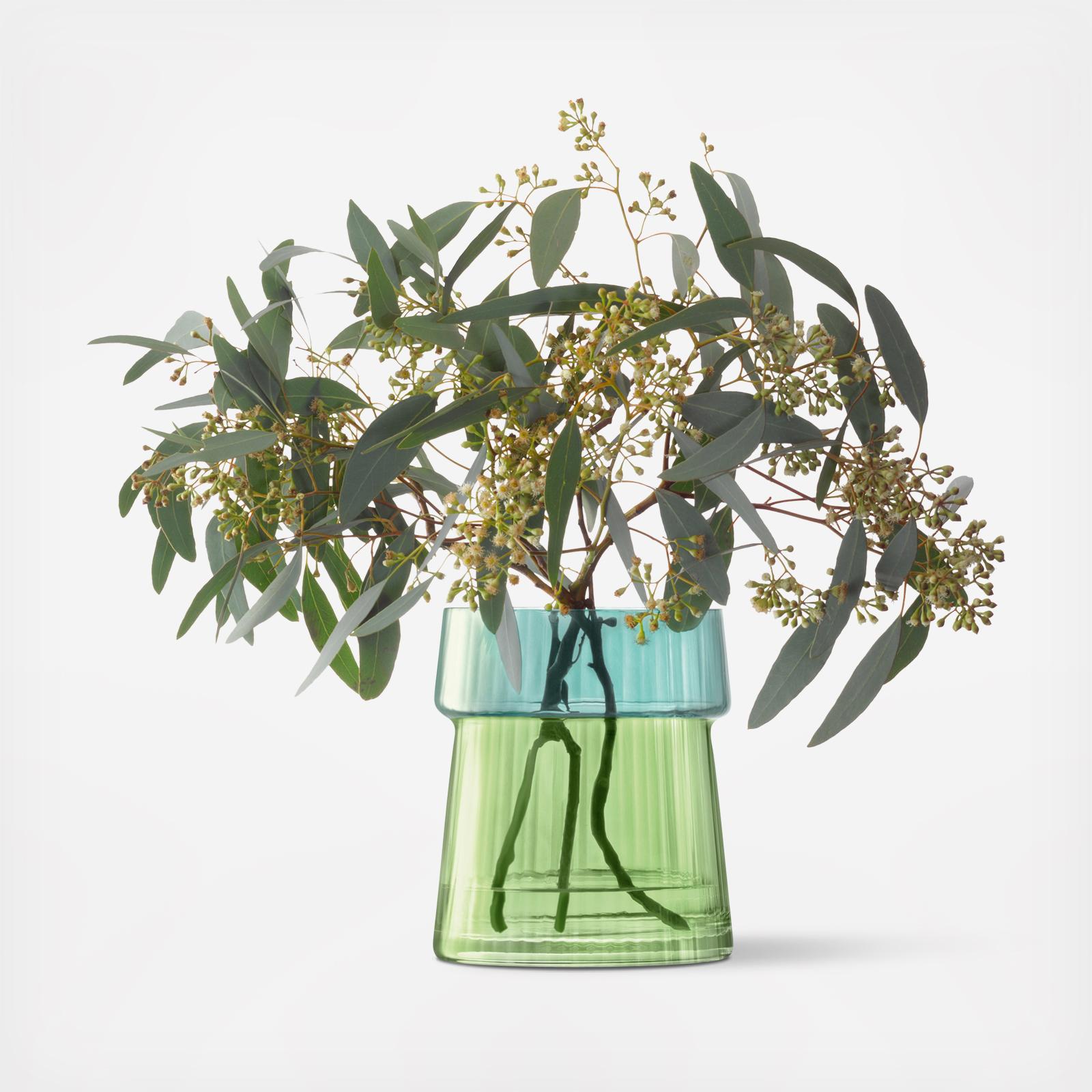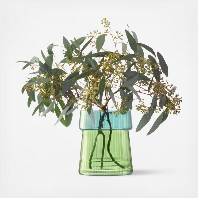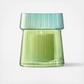 A mouth-blown vase/lantern with a ribbed texture and a dual-tone finish that has been painted by hand.