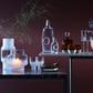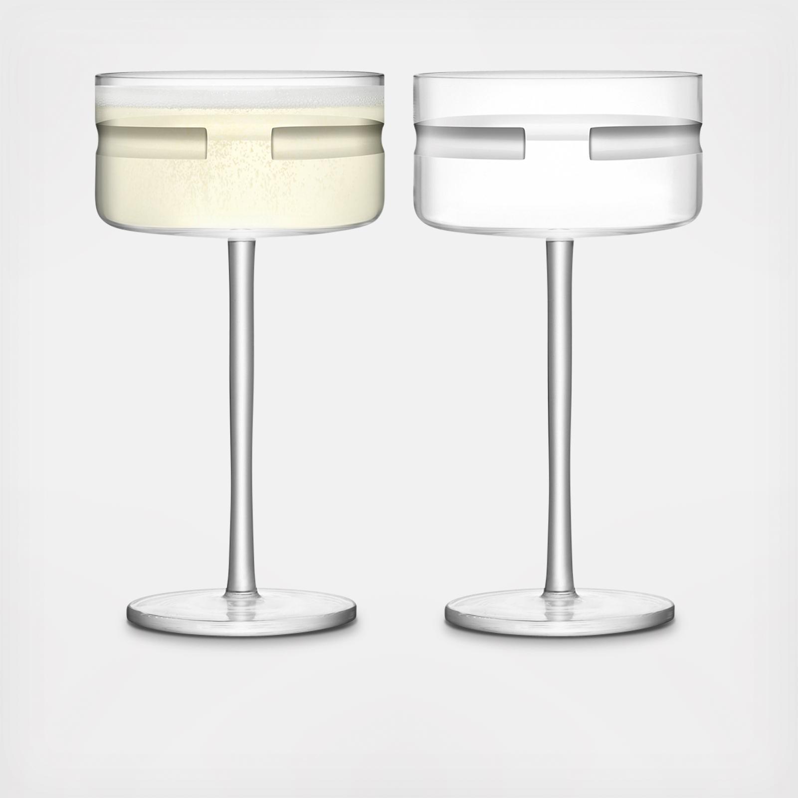 Saucers with thick stems, cylindrical bowls and hand-cut decoration, mouth blown and handmade by master glassblowers.