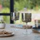Set of four wine glasses with angular bowls, hand painted with a reflective grey lustre.