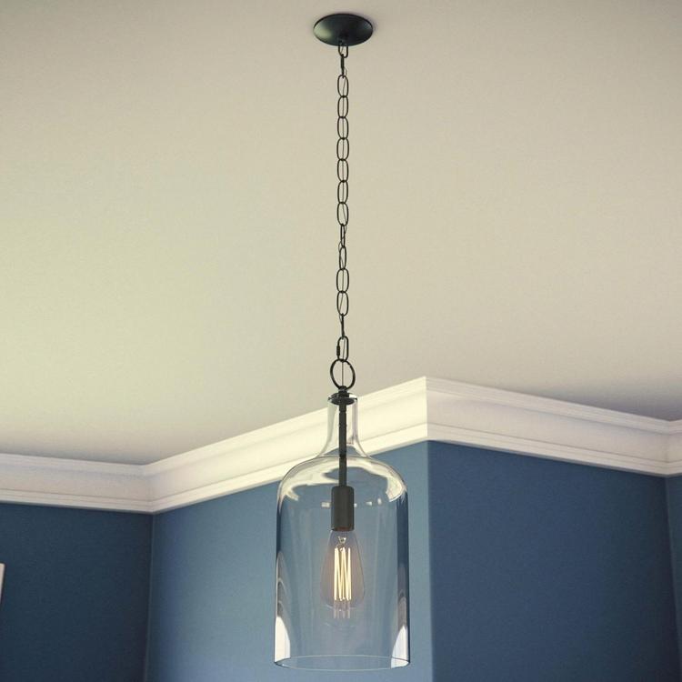 Vintage-inspired forms with a modern finish, this pendant provides the perfect accent lighting for any home. Especially well-suited to small spaces, the crystal-clear glass shade allows room-filling illumination while lending itself to a wide variety of styles. Picture the jug-shaped pendant over your cottage chic dining table, or imagine a vintage-styled Edison bulb illuminating from within the dynamic glass to set a rustic atmosphere for your industrial-modern bar. Oil rubbed bronze hardware adds a warm, inviting look to the fixture. With the crisp, clean lines and glossy glass, the design possibilities are truly endless.