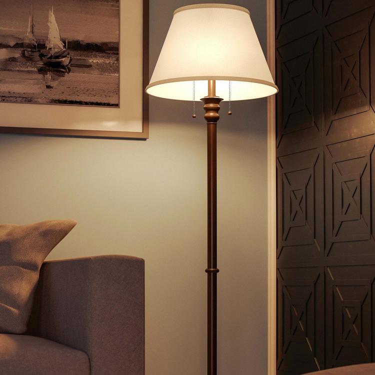 • Easy Reach Dual Pull Chains: Regardless of how this floor lamp is positioned in your living room or bedroom, access to brightness adjustments are within easy reach thanks to two easy reach pull chains