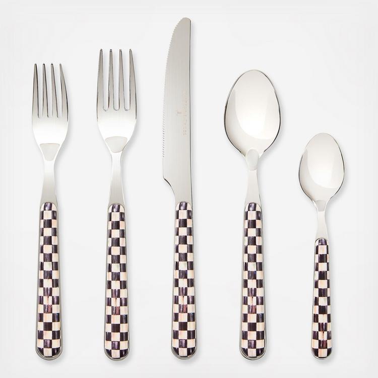 Set a place for style with this Courtly Check Bistro Flatware 5 Piece Place Setting. Each piece is crafted from durable stainless steel and decorated with Courtly Check on the handle.