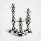 Cast a welcoming glow in an entry hall or illuminate an impromptu potluck with old friends. The Courtly Check Enamel Candlestick is made of enameled steel, rimmed in bronzed stainless steel. With a subtle jewel-tone palette woven by an artisan’s brush through the glossy, hand-painted, high-contrast checks, this radiant candlestick is spellbinding alone or in a trio with its counterparts.