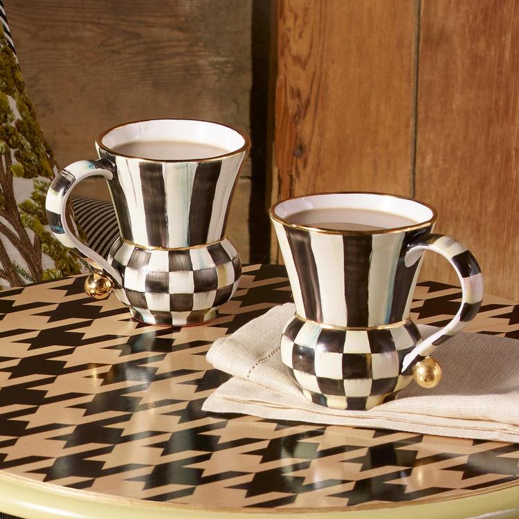 For a frothy morning cappuccino or hot milk before bedtime, our Courtly Check® Mug will warm body and soul. A cozy ceramic silhouette with hand-painted Courtly Checks®, this mug is as comforting as can be. A beautiful juxtaposition of ivory and onyx, our deceptively simple signature checks reveal an intricate spectrum of jewel-toned colors. Handmade, fired, glazed, fired again, hand-painted, fired again, and embellished with lustre, each piece is stamped by the artisans involved in its creation. Hand-wash with care.