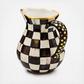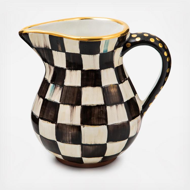 Made start to finish in Aurora, New York, the ceramic Courtly Check® Portly Pitcher is sized just right for holding water, lemonade, or fresh flowers. Hand-painted with our color-dragged, signature check pattern, it’s trimmed with gold lustre dots on the handle.