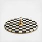 Whether you are creating a charcuterie or presenting pastries, the Enamel Cheese Course serves with style. It features our hand-painted signature checks on a heavy-gauge, hand-glazed steel underbody, topped with a clear glass knob for easy handling.