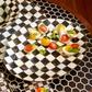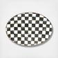 A welcome gift for the Courtly Check collector, the Courtly Check Enamel Oval Platter is a great addition to the dinner or buffet table. Hand-painted checks reveal a spectrum of accent colors. Steel underbody and bronzed stainless steel rim.