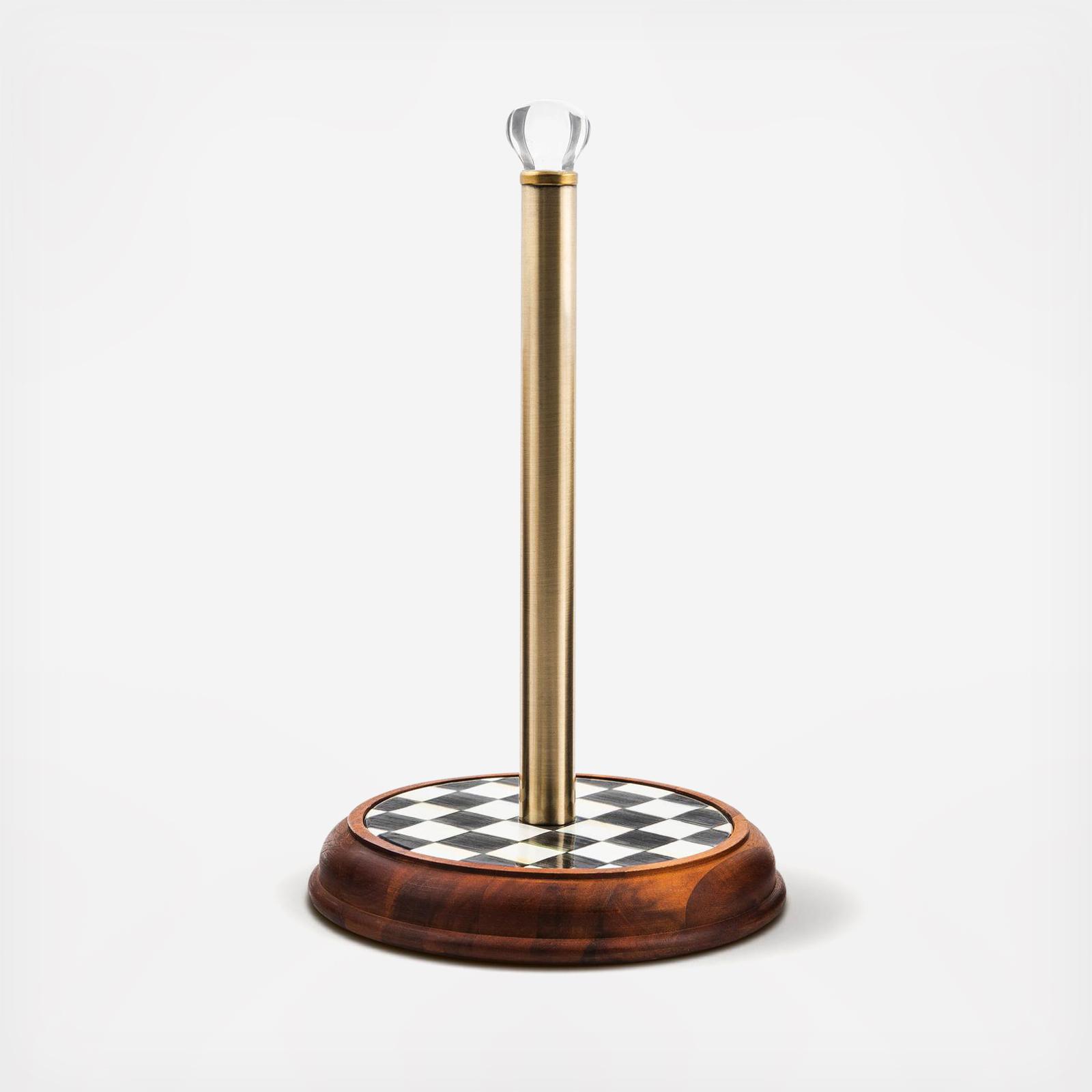 Every kitchen needs a Courtly Check® Wood Paper Towel Holder! Hand-painted checks on enamel, with wood base, stainless steel center post, and glass finial.
