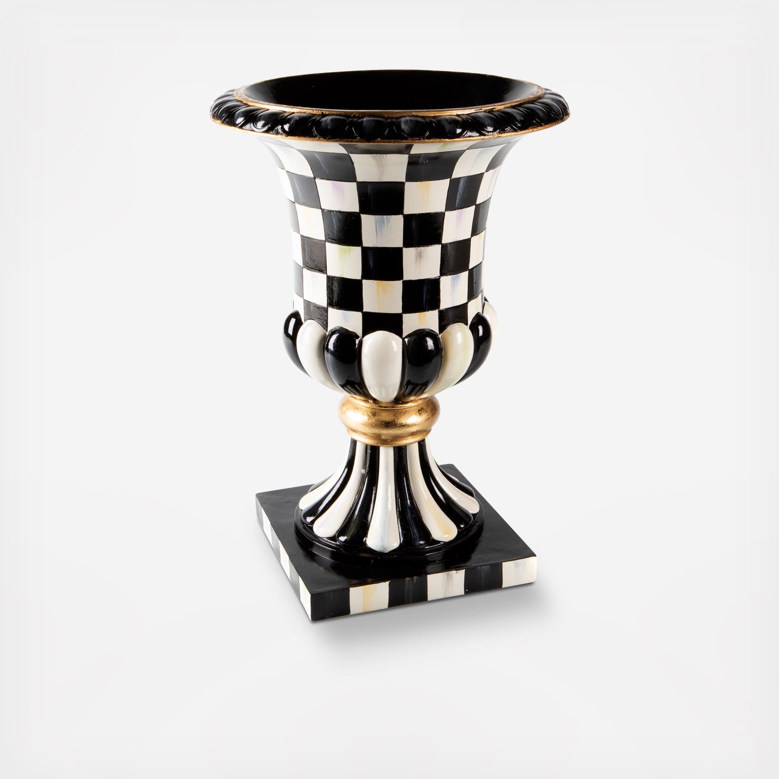 Elevate the presentation of our Courtly Check® pattern with the Courtly Check Pedestal Tabletop Urn. Hand-painted with our signature black and white patterns with golden embellishments, it’s just the right size for our Large Courtly Boxwood Topiary Drop In.