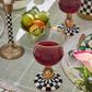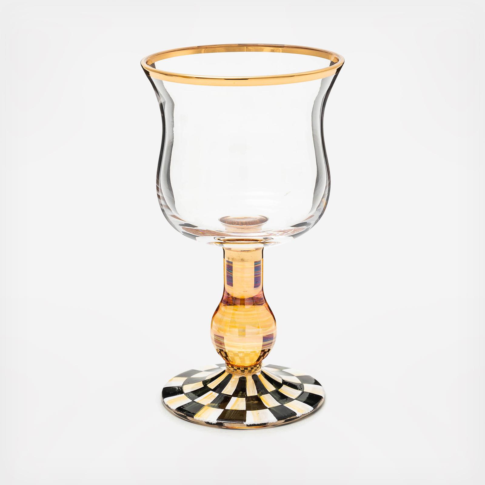 Make any occasion more special by setting the table with our hand-painted Courtly Check® Wine Glass. This mouth-blown glass, featuring a base of Courtly Check, topped with an amber lustre stem, is trimmed with gold lustre. Pieces may vary due to the handmade nature of each product.