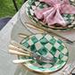 Take a moment out of your hectic schedule to start your day right with our Emerald Check Breakfast Bowl. Similar in theme to our signature enamel Courtly Check® pattern, Emerald Check features green checks that are hand-painted and rimmed in bronzed stainless steel. Pieces may vary due to the handmade nature of each product.
