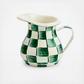 The Emerald Check Creamer is the perfect way to energize your morning cup of joe. Take your coffee black? Don’t fret—this versatile enamel vessel invites countless uses—from hot fudge to spaghetti sauce to homemade herb vinaigrette. The heavy-gauge steel underbody is glazed with hand-painted green checks. Pieces may vary due to the handmade nature of each product.