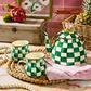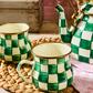 Hearty and handy, our handsome Emerald Check Mug is perfect for a cup of hot chocolate or calming tea. Similar in theme to our signature Courtly Check® enamel pattern, Emerald Check features hand-painted green checks that are rimmed in bronzed stainless steel. Pieces may vary due to the handmade nature of each product.