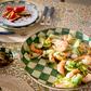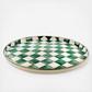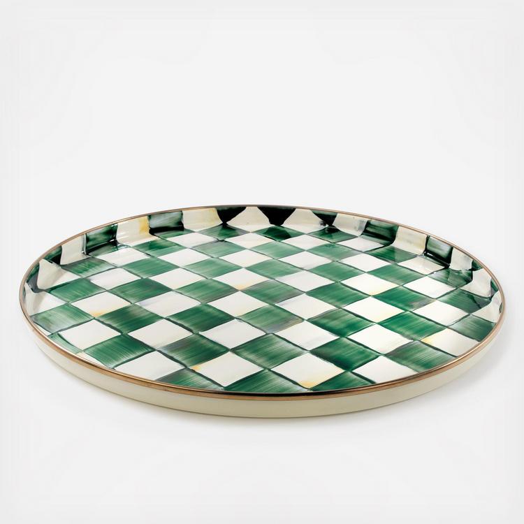 Handy as it is handsome, the Emerald Check Round Tray is perfect for year-round use, indoors and out. A subtle palette is woven by an artisan’s brush through the hand-painted green checks. Pieces may vary due to the handmade nature of each product.