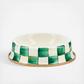 The cat’s meow. Our Emerald Check Cat Dish is hand-painted, with a heavy-gauge steel underbody and bronzed stainless steel rim. Fashionable enough for the most finicky felines. Purr-fect!