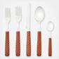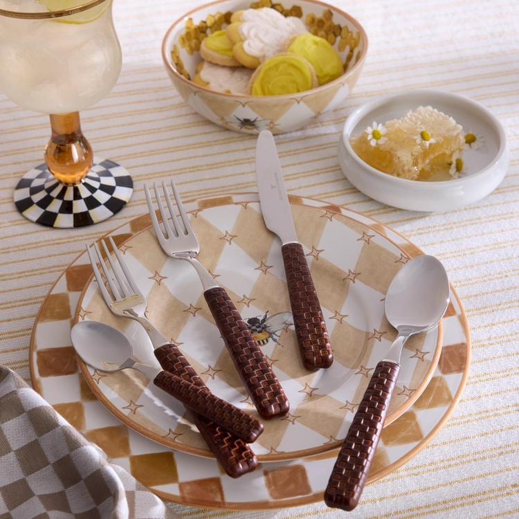 From weeknight suppers to special occasions, our Everyday 5-Piece Place Setting adds form and function to the table. Each set includes a salad fork, a dinner fork, a dinner knife, a dinner spoon, and a teaspoon with stainless-steel heads set into check-embossed handles. Pieces may vary due to the handmade nature of each product.