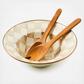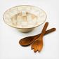 The Mocha Check Salad Serving Set is a must-have for The Entertaining Kitchen™! It includes the Mocha Check Serving Bowl, featuring coffee-colored checks hand-painted on a heavy-gauge, hand-glazed steel underbody, rimmed in bronzed stainless steel, accompanied by acacia wood salad servers. Comes gift boxed, too, so it’s the perfect present for the newly wed or the newly nested. Pieces may vary due to the handmade nature of each product.