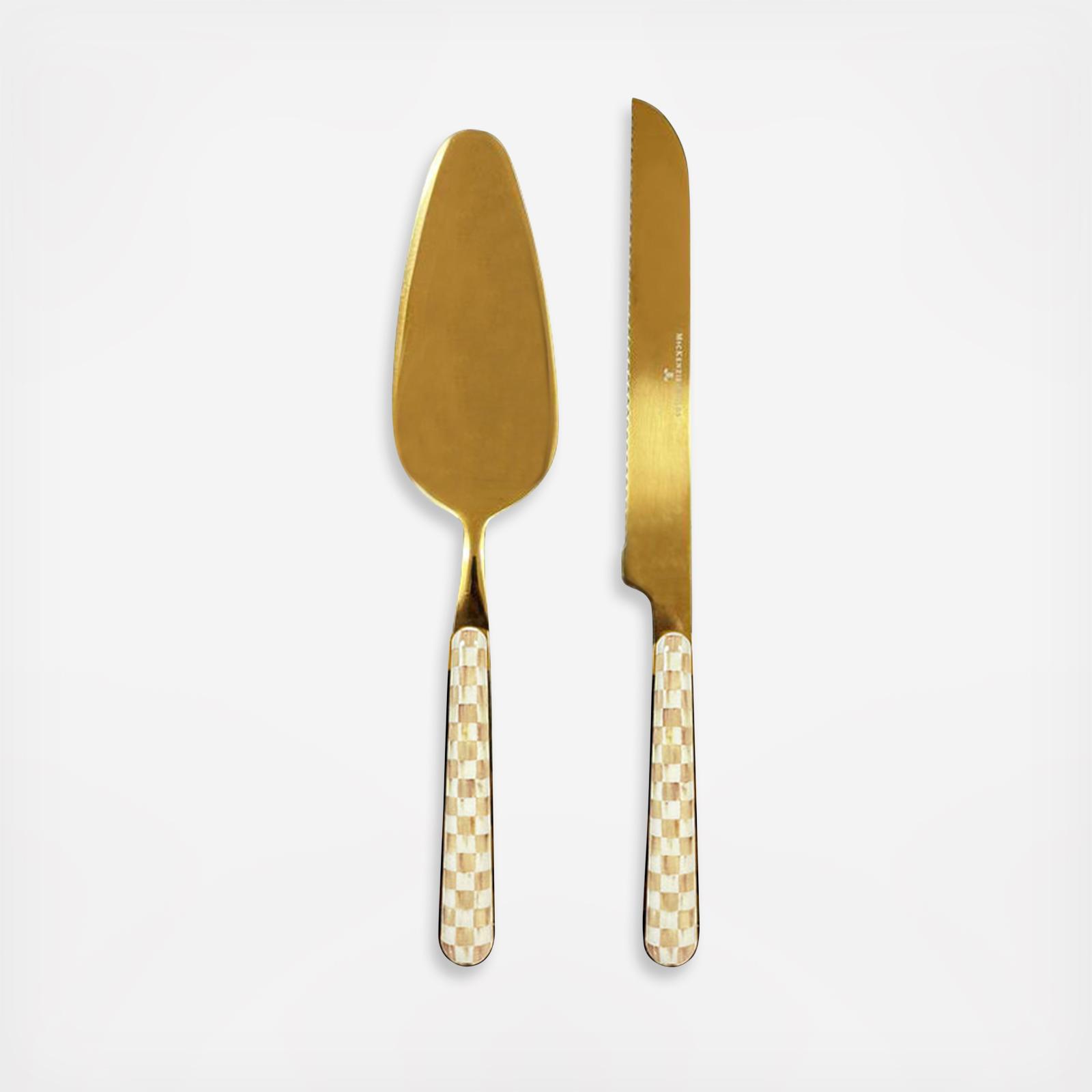 Serve up your sweet slices with this elegant Mocha Check Bistro Cake Serving Set. Each piece is crafted from durable stainless steel and decorated with Mocha Check on the handle.