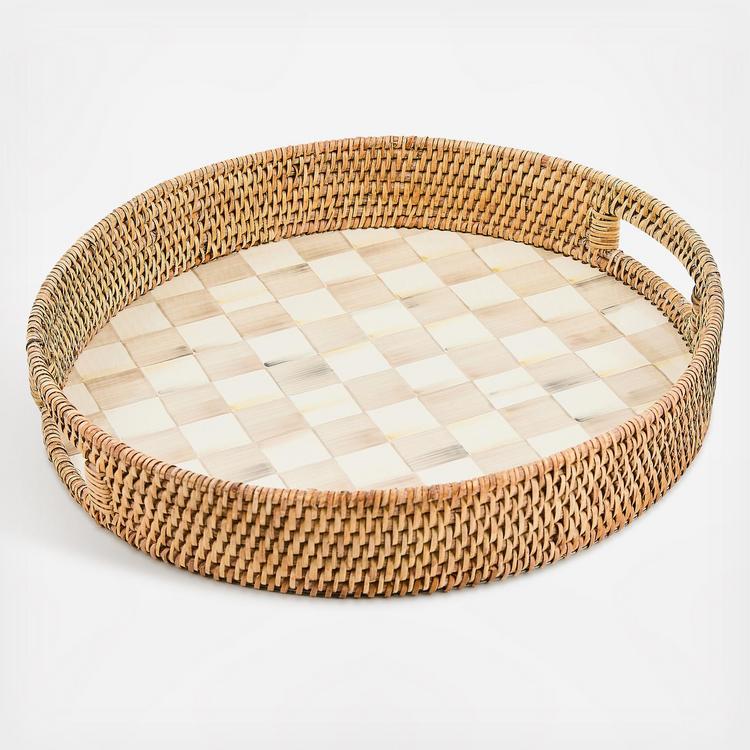 Serve in style with our Mocha Check Enamel & Rattan Round Serving Tray, a perfect blend of elegance and practicality. The coffee-hued check pattern is beautifully paired with the rich texture of rattan, creating a striking contrast that’s both chic and functional. Ideal for entertaining in style or elevating any tablescape, this tray brings color and charm to the home.