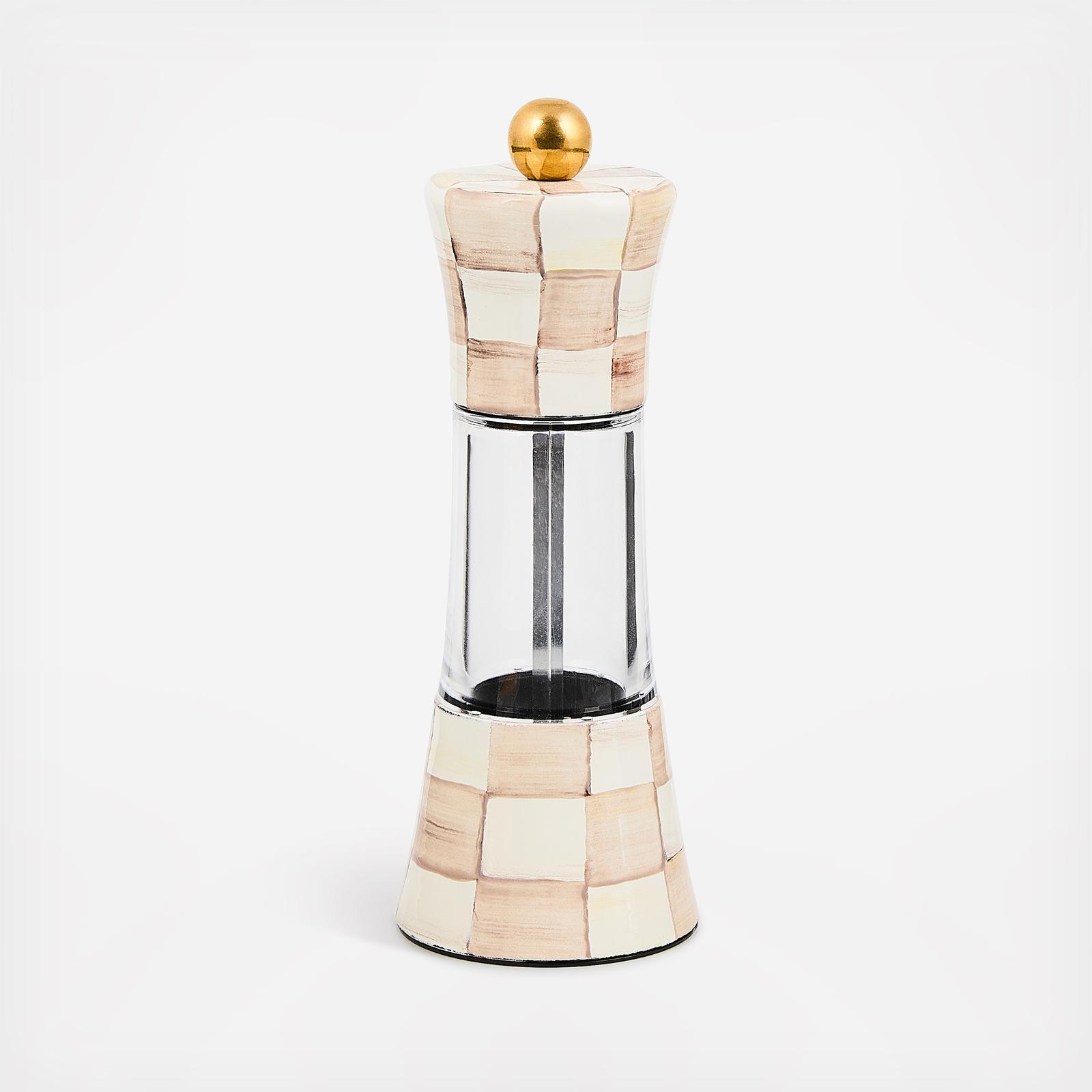 Spice up your table with our Mocha Check Grinder, which features our color-dragged checks in a range of brilliant espresso hues. Beyond its stunning looks, the ceramic-geared grinders have excellent mechanics and are built to last, for use with whole peppercorns or coarse salt. This versatile tool makes a fantastic gift—that is, if you can manage not to keep it for yourself!
