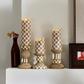 Light up your tabletop or mantel with this Mocha Pillar Candle Holders Set. Hand-painted with our warm Mocha Check pattern with interwoven texture, they’re perfect for pairing with your favorite pillar candles.